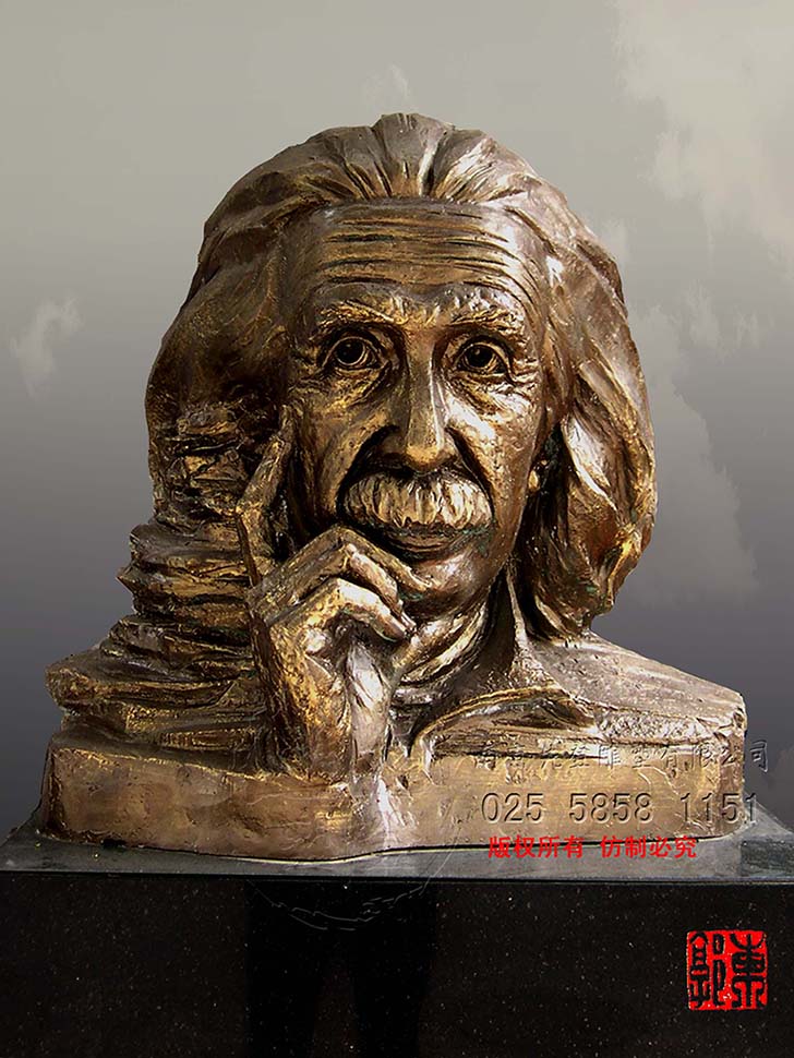 雕塑作品是雕塑家个人内心的情感和表达欲望情感的载体、宣扬精神层面的介质。爱因斯坦的雕塑塑造的是智慧与仁义的结合,他的人生在不断探索、思考中感染着人类。艺术家索取的就是爱因斯坦散发出的人格魅力,他是世界的公民,他的爱建立在人道主义情怀之上,不属于哪一个国度,艺术家无需精雕细琢,不是色彩的感觉,是内蕴情感的流露,犹如匕首刺向伪君子的面具,真实的面对生活,从事严谨的科学研究。那是什么样的文化孕育出世纪的伟人,是什么样的审美心理塑造出的永恒。