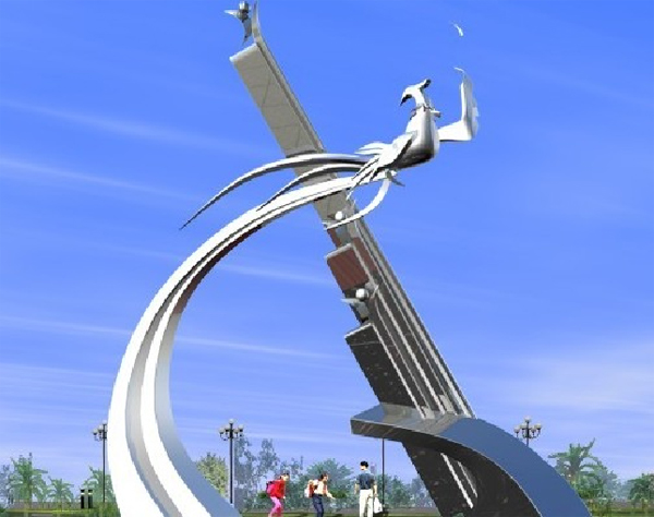 雕塑造型赋予强烈的现代风格,林立的楼宇,雀跃腾飞的凤凰,以及巨浪腾空倾起。昭示的是这个都市化的城市日新月异的飞速发展,快节奏的生活模式。正如雕塑暗含的寓意“飞‘凰’腾达”。