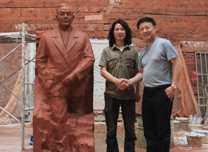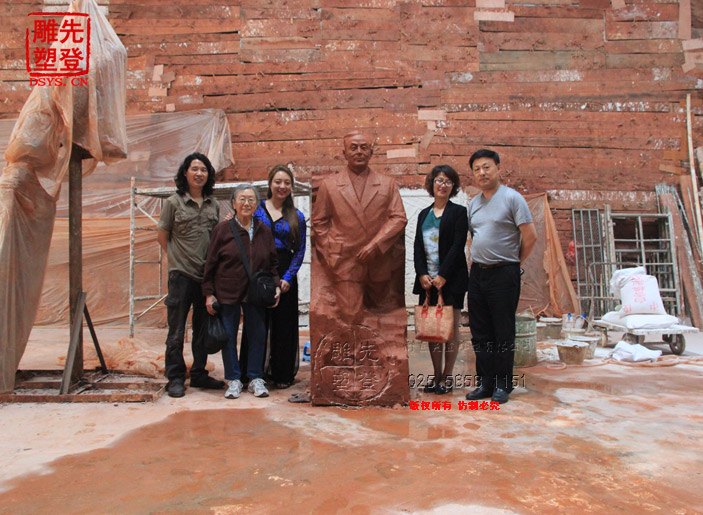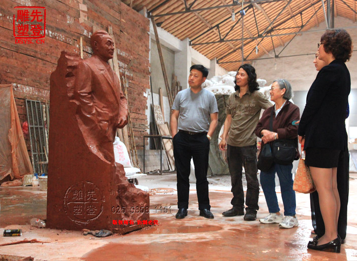 先登雕塑公司,东郭雕塑工作室受有关部门委托,为东南大学杨廷宝故居创作青铜全身像,杨廷宝之女,杨士英教授及其孙女、潘翔处长和相关领导莅临先登雕塑公司指导