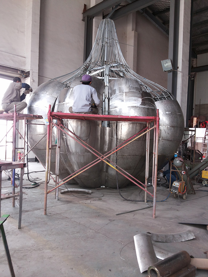 案列名称:不锈钢贴金箔大蒜雕塑