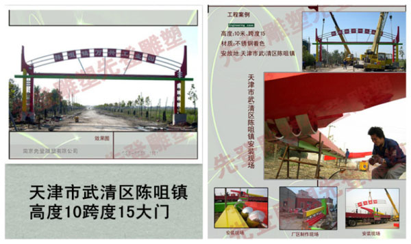 88彩票成功案例:该不锈钢雕塑安装于天津市武清区陈咀镇,高度10米。