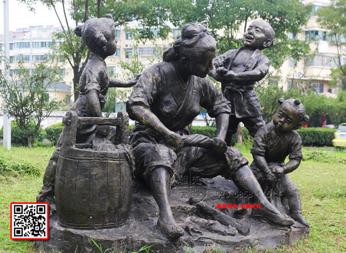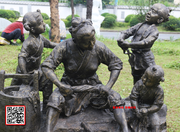 民间小型成品系列现货玻璃钢雕塑,阿炳、放电影、喝混沌、浣衣女、成品真人比例